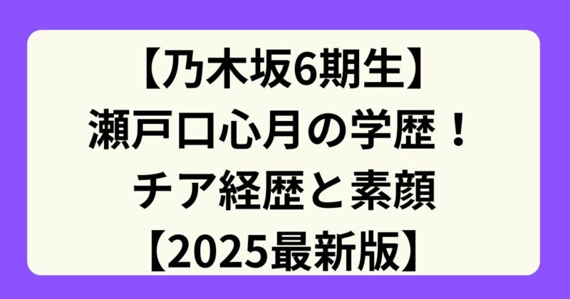 乃木坂46の6期生・瀬戸口心月さんの学歴や経歴、鹿児島実業高校チアリーディング部時代のエピソード、性格や素顔を徹底解説。鹿児島出身の努力家アイドルの魅力をわかりやすく紹介します。【2025最新版】 未分類
