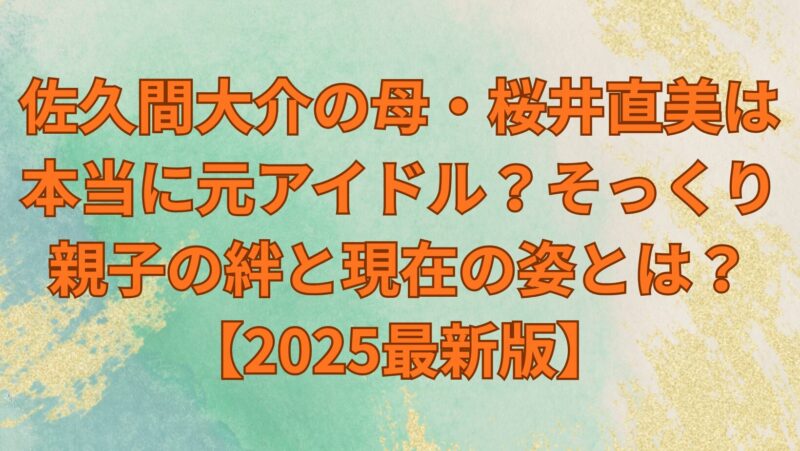 佐久間大介の母・桜井直美は本当に元アイドル?そっくり親子の絆と現在の姿とは?【2025最新版】