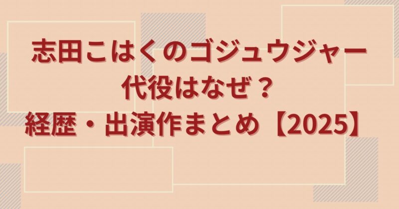 志田こはくのゴジュウジャー代役はなぜ?経歴・出演作まとめ【2025】