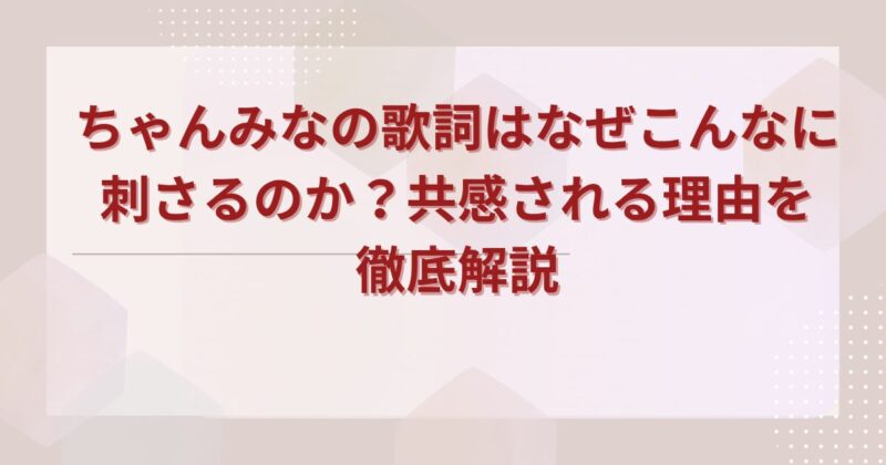 ちゃんみなの歌詞はなぜ心に刺さるのか?SAD SONG、PAIN IS BEAUTYなど代表曲から、リアルな痛みと自己肯定のメッセージを徹底考察。ファンエピソードや家族背景、最新ニュースまで完全網羅。ヒップホップ界を代表する28歳ラッパーの歌詞の魅力を解説します。 芸能人