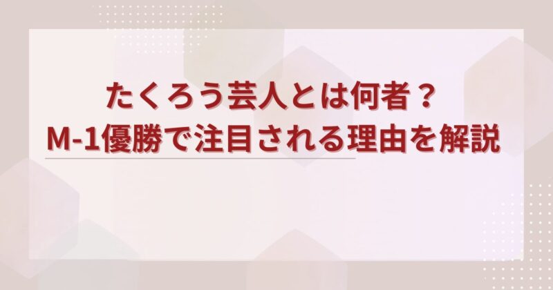 たくろう芸人とは何者?2025年M-1グランプリ優勝で注目された理由を解説。独特すぎる漫才の特徴、評価されたポイント、今後売れるのかまで考察。 話題の人物