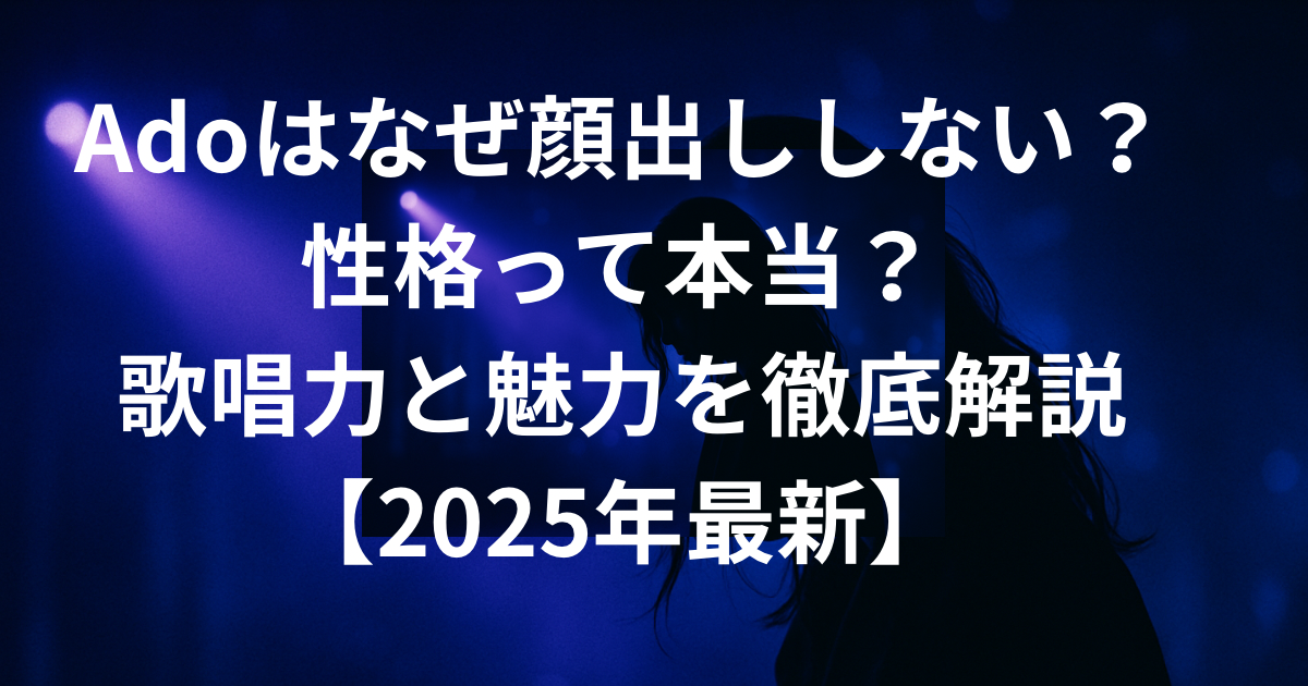 顔出しを控えながらも圧倒的な存在感を放つ歌い手・Ado。 彼女の「顔を出さない理由」や「本当の性格」、そして誰もが魅了される歌唱力について、最新情報をもとに徹底解説します。