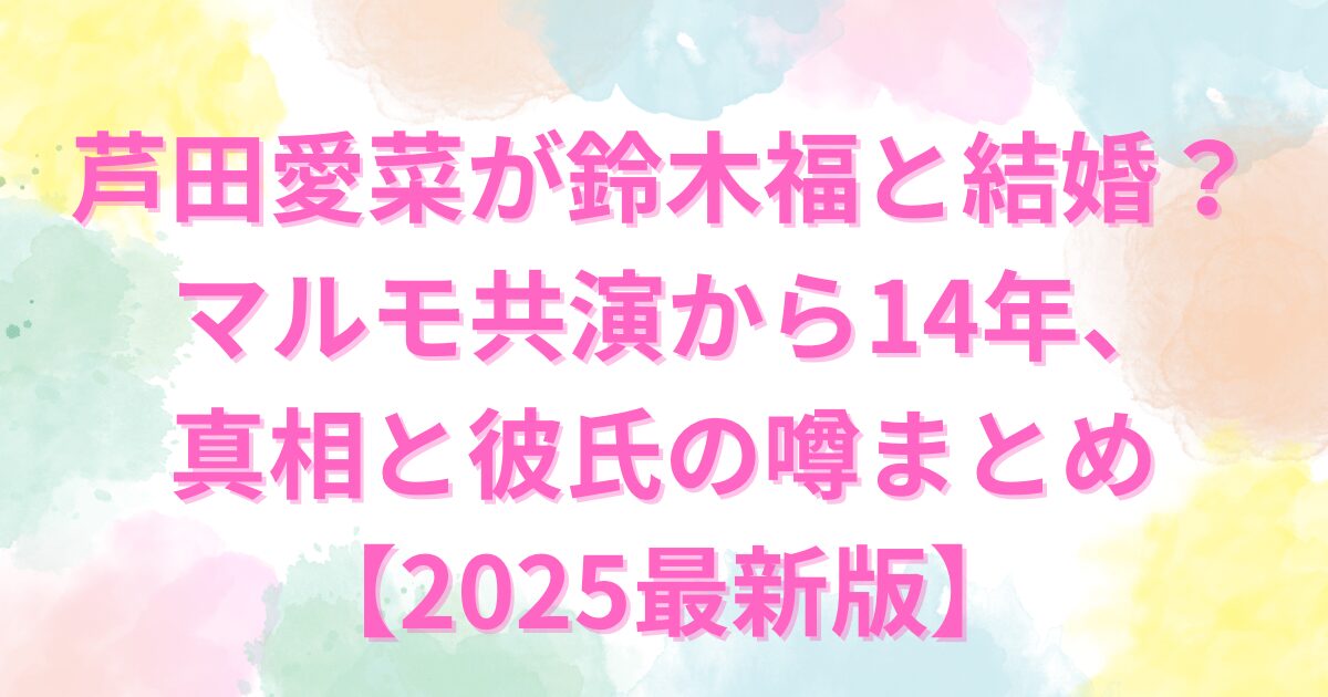 結論:芦田愛菜さんは2025年11月現在、結婚しておらず、鈴木福さんとの交際・結婚の事実は一切ありません。