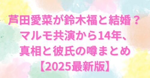 *芦田愛菜と鈴木福の結婚の噂は事実ではなく、共演をきっかけに広まった憶測です。詳しい経緯はこちらで解説しています。↓