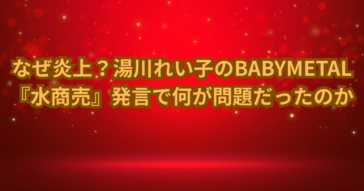 湯川氏はX(旧Twitter)で「美しさと若さで人を惹きつける存在」とBABYMETALを形容し、「音楽的な実力や魅力ではない」と投稿。その中で「水商売的な評価」という表現を用いたことが波紋を広げました。