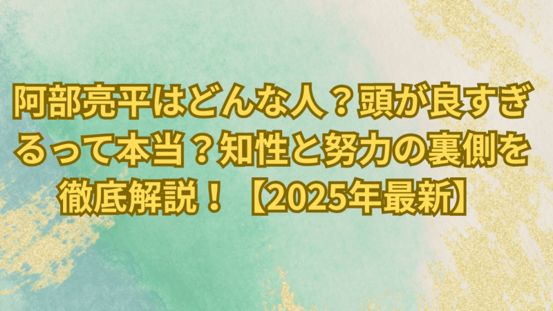 阿部亮平はどんな人?頭が良すぎるって本当?知性と努力の裏側を徹底解説!【2025年最新】
