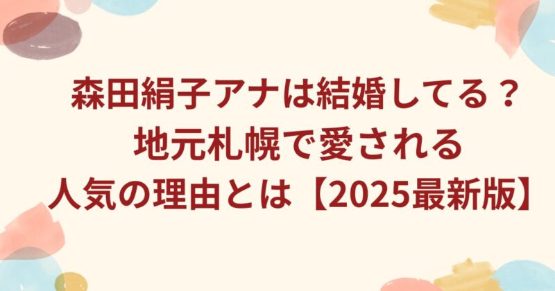 森田絹子アナは結婚してる?地元札幌で愛される人気の理由とは【2025最新版】