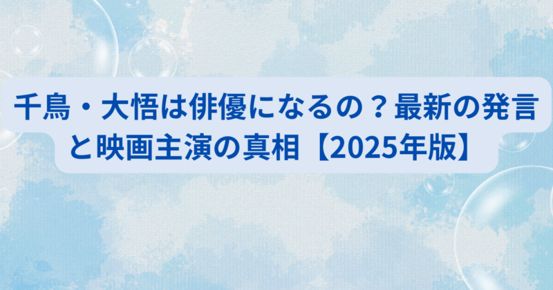 千鳥・大悟は俳優になるの?最新の発言と映画主演の真相【2025年版】