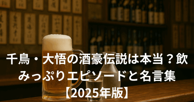 千鳥・大悟の伝説的な酒豪エピソードを徹底解説。「ラスト1杯からの8杯」「ワイン30本買い占め」など豪快な飲みっぷりと名言集をまとめました。破天荒ながらも憎めない大悟さんの魅力が満載! -
