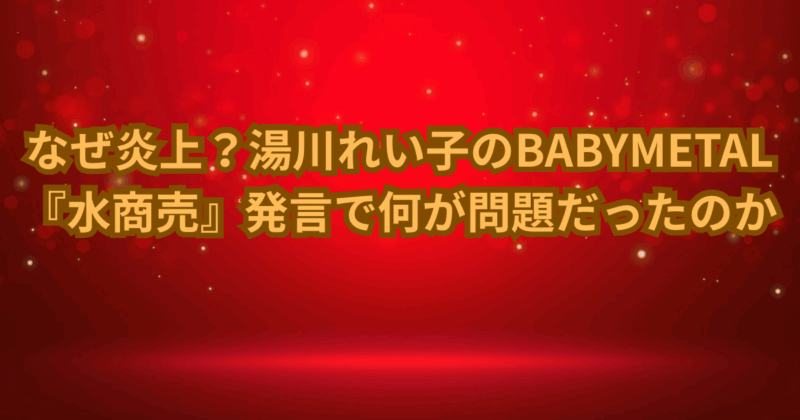 2025年9月、音楽評論家・湯川れい子氏がBABYMETALを「水商売的」と評した発言が大炎上。世代間の言葉の捉え方の違いが招いた騒動の背景と、88歳評論家の真意を詳しく解説します。 -