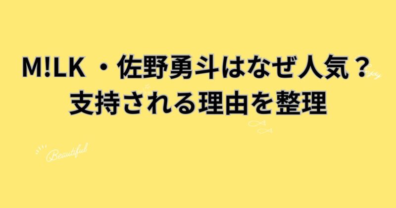M!LK ・佐野勇斗はなぜ人気?支持される理由を整理