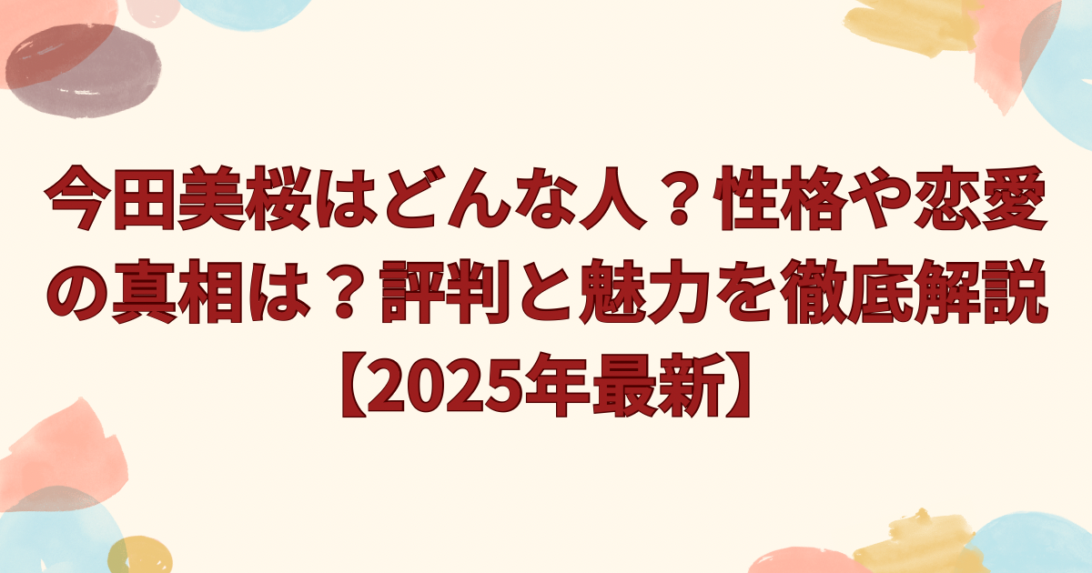 この記事では、今田美桜さんの性格・評判・恋愛の真相・最新出演作まで、ファンと視聴者が知りたい情報を網羅。
