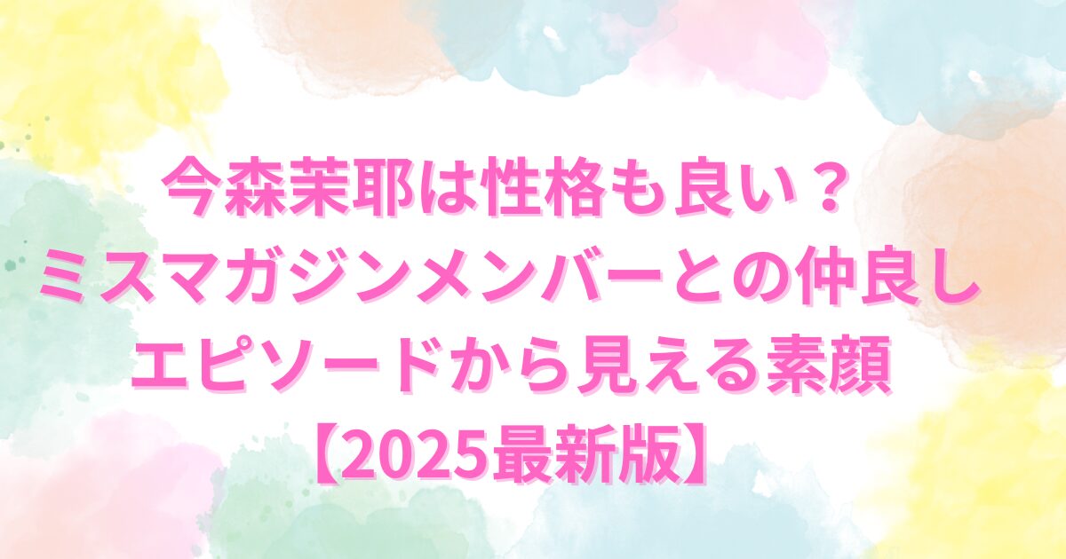 今森茉耶さんの性格は、ミスマガジンメンバーとのエピソードから明るく仲間思いな素顔が浮かび上がります。努力家で前向きな姿勢が、彼女の成長を支えているんでしょうね。スキャンダルは残念ですが、19歳という若さで学べることも多いはず。これからも応援したくなる存在です! 皆さんは茉耶さんのどのエピソードが好きですか? コメント待ってます~。次回のブログもお楽しみに!