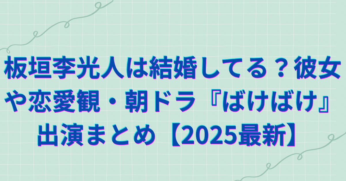 板垣李光人は結婚してる?彼女や恋愛観・朝ドラ『ばけばけ』出演まとめ【2025最新】