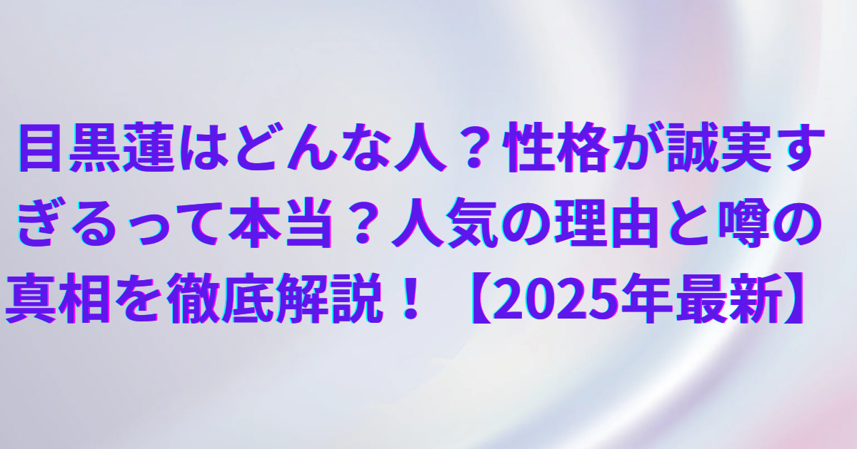 俳優としてもアイドルとしても注目を集める目黒蓮。Snow Manの一員としての活躍はもちろん、ドラマ・映画・CM・モデルと幅広い分野で存在感を高めています。この記事では、目黒蓮さんの人物像・経歴・性格・交友関係・噂の真相までをファクトと考察に分けて丁寧に解説します。