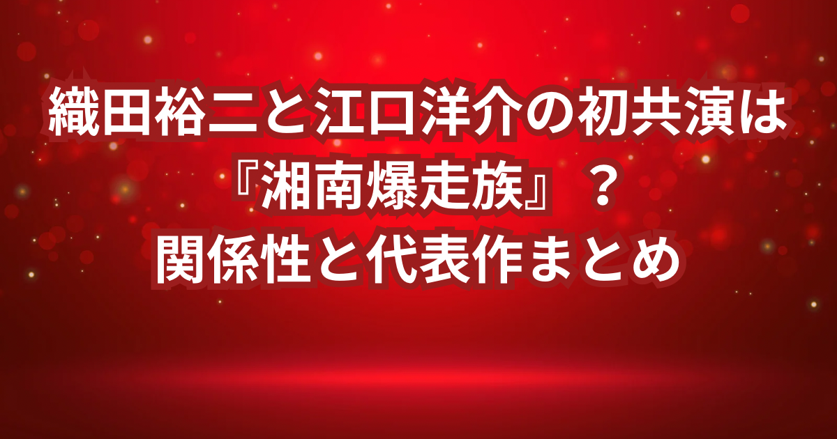 織田裕二さんと江口洋介さんといえば、日本のドラマ・映画史を語るうえで欠かせない存在です。実は二人の関係は、デビュー間もない頃に始まっていました。1987年公開の映画『湘南爆走族』での共演がきっかけとなり、その後の大ヒットドラマ『東京ラブストーリー』へとつながっていきます。この記事では、二人の共演エピソードや作品の魅力を振り返りながら、なぜ今もファンに支持され続けるのかを探ります。