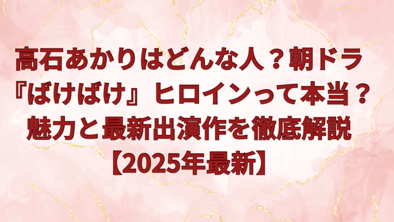 映画『ベイビーわるきゅーれ』やNHK朝ドラ『ばけばけ』で注目の女優・高石あかり。プロフィールや経歴、魅力、最新出演作までをわかりやすく解説。2025年もさらなる活躍が期待されます!