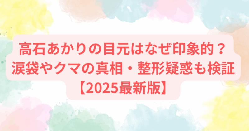 高石あかりの目元はなぜ印象的?涙袋やクマの真相・整形疑惑も検証【2025最新版】