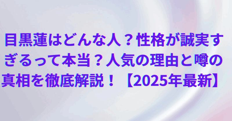 【2025年最新】Snow Manの目黒蓮さんの経歴・性格・交友関係・噂の真相を徹底解説。誠実で努力家な姿勢が支持を集める理由を、筆者の独自視点で詳しく紹介します。