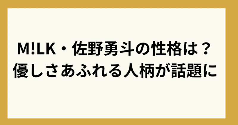 M!LK・佐野勇斗の性格は?優しさあふれる人柄が話題に